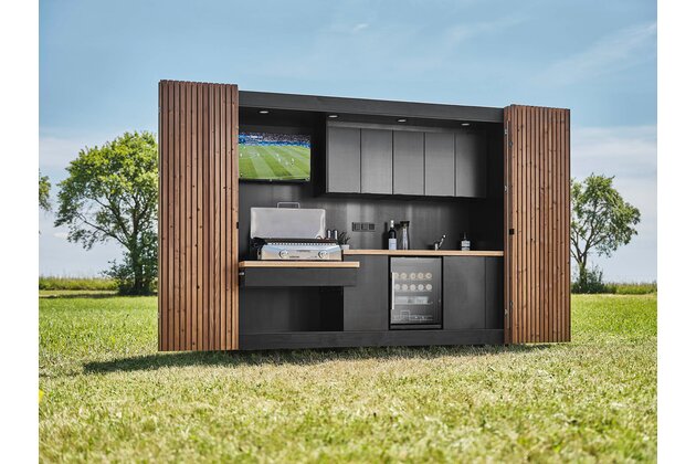 Venkovní kuchyně AITAA je kompaktní venkovní kuchyňský modul, který má za cíl nabídnout „vše v jednom“ pro grilování a posezení na zahradě/terase po celý rok. Podle zvolené řady může obsahovat např. plynový gril, chladničku, dřez s baterií, úložné prostory, osvětlení a u vyšších modelů i televizi. Kuchyň lze umístit na terasu, do zahrady nebo ji použít i jako dělící prvek pro větší soukromí tento text tiež poprosím preložiť.